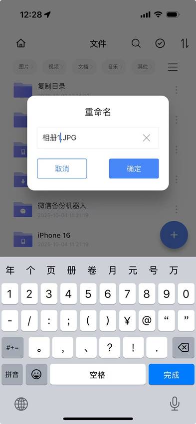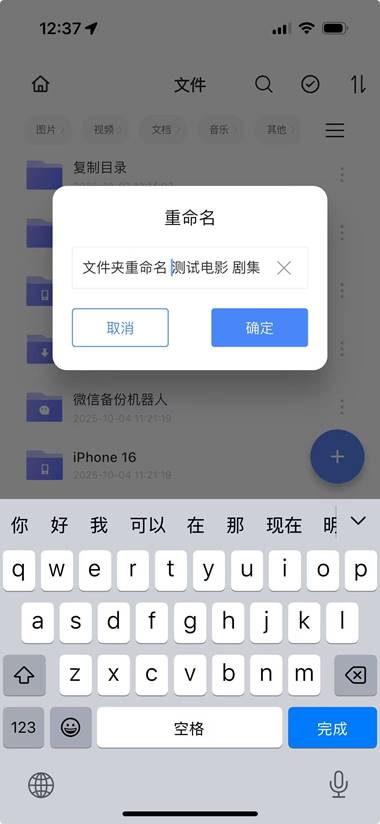 步骤1:APP首页-文件管理-点击文件夹旁边的【…】 按钮,弹出操作菜单选择“重命名”