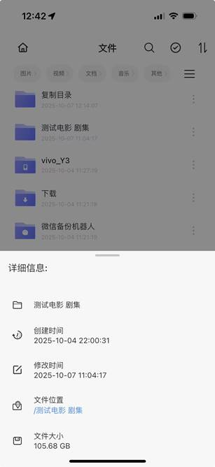 步骤1:APP首页-文件管理-点击文件夹旁边的【…】 按钮,弹出操作菜单选择“详情”