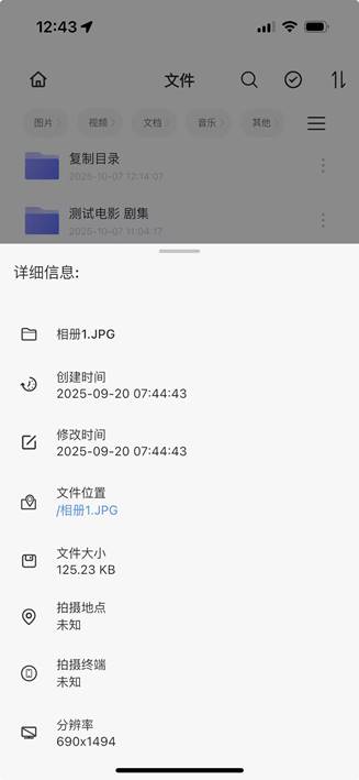 步骤1:APP首页-文件管理-点击图片旁边的【…】 按钮,弹出操作菜单选择“详情”