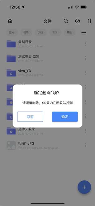 步骤2:弹出“确定删除”,点击确定后即可删除。如果想还原删除文件,90天内可在回收站进行还原