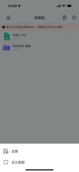 文件夹或者文件进行删除、删除会进入回收站、回收站可保留90天可恢复。