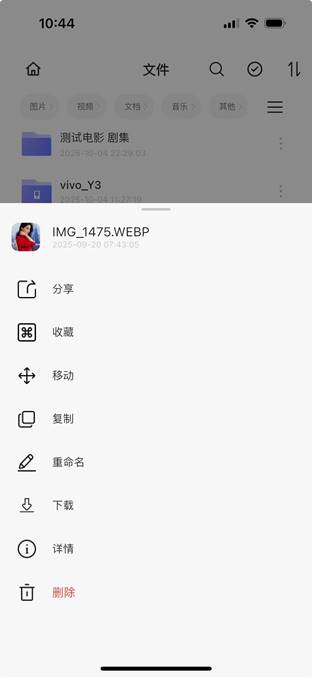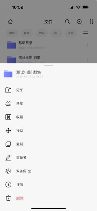 步骤1:APP首页-文件管理-点击文件夹/文件旁边的【…】 按钮,弹出操作菜单选择“删除”