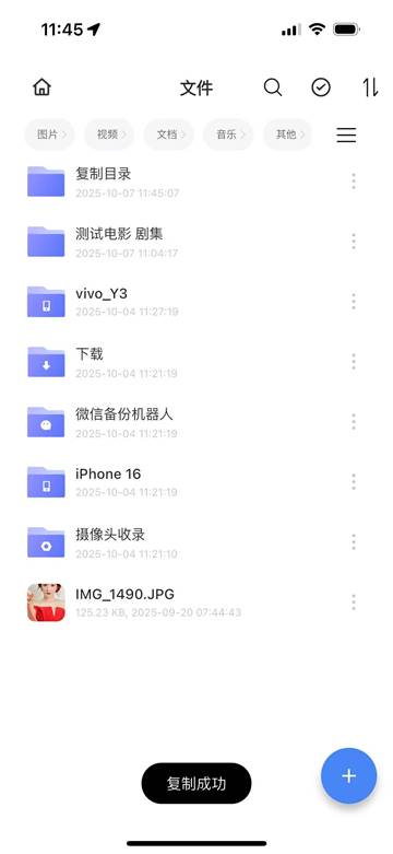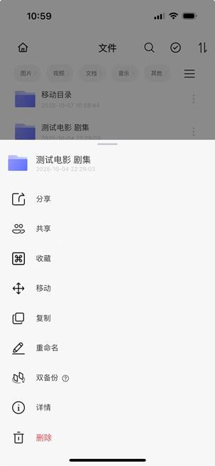 步骤2:APP首页-文件管理-点击文件夹旁边的【…】 按钮,弹出操作菜单选择“复制”