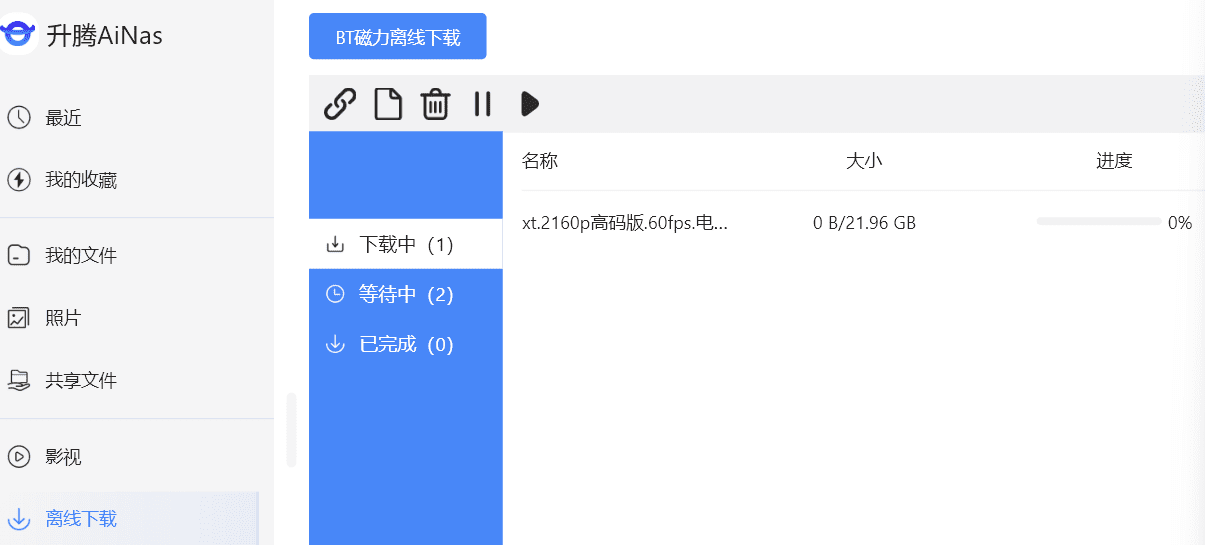 步骤3:发送成功后,进入“下载中”,查看下载任务