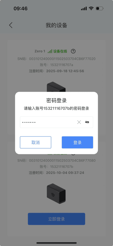 步骤3:“我的设备”页面,选择恢复数据的设备,点击“立即登录”