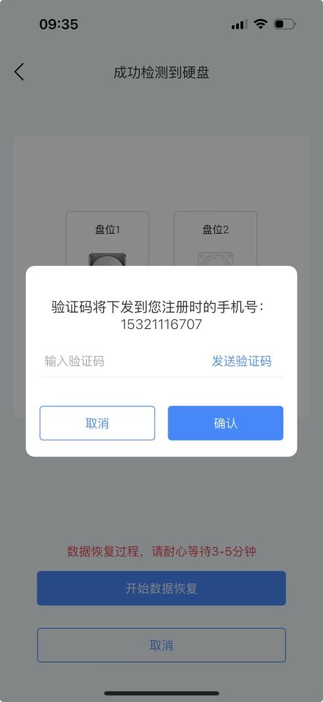 步骤6:点击“开始数据恢复”,弹出“发送验证码”页面