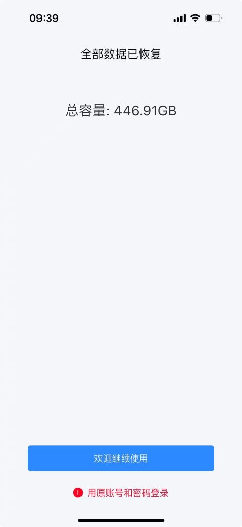 步骤2: 新设备开机后,进入APP首页-选择“数据恢复”