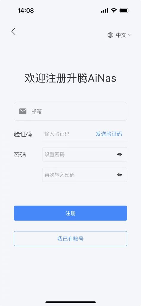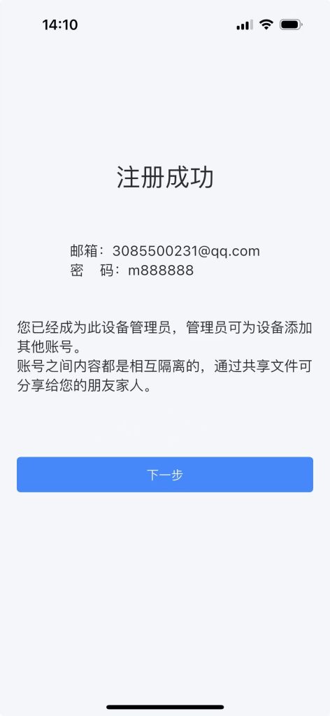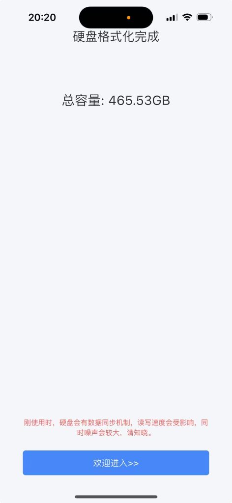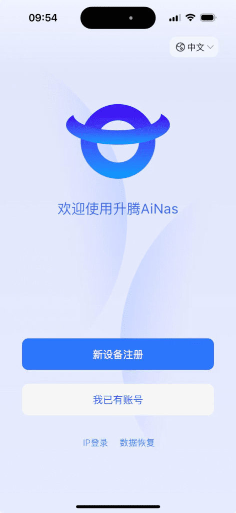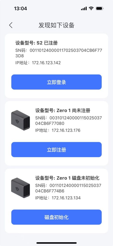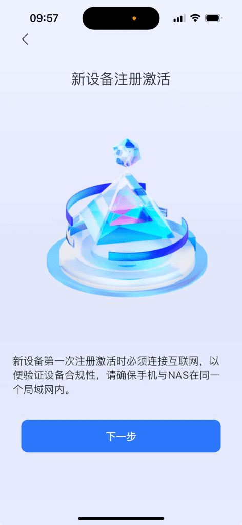设备状态:设备开机后(此时状态灯/磁盘灯为红色慢闪),打开APP、点击“新设备注册”。