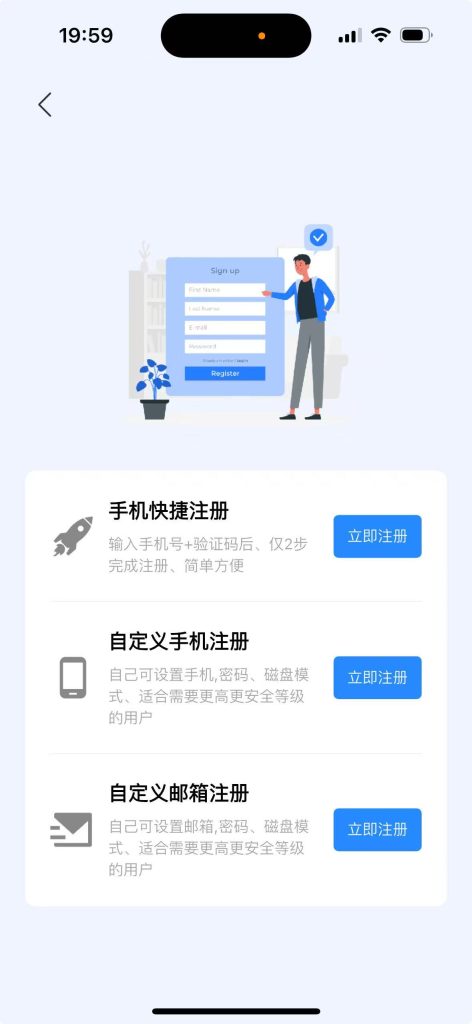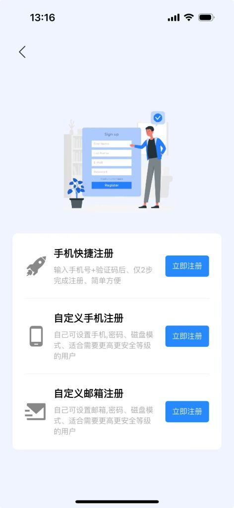 自己可设置手机,密码、磁盘模式、适合需要更高更安全等级的用户注册