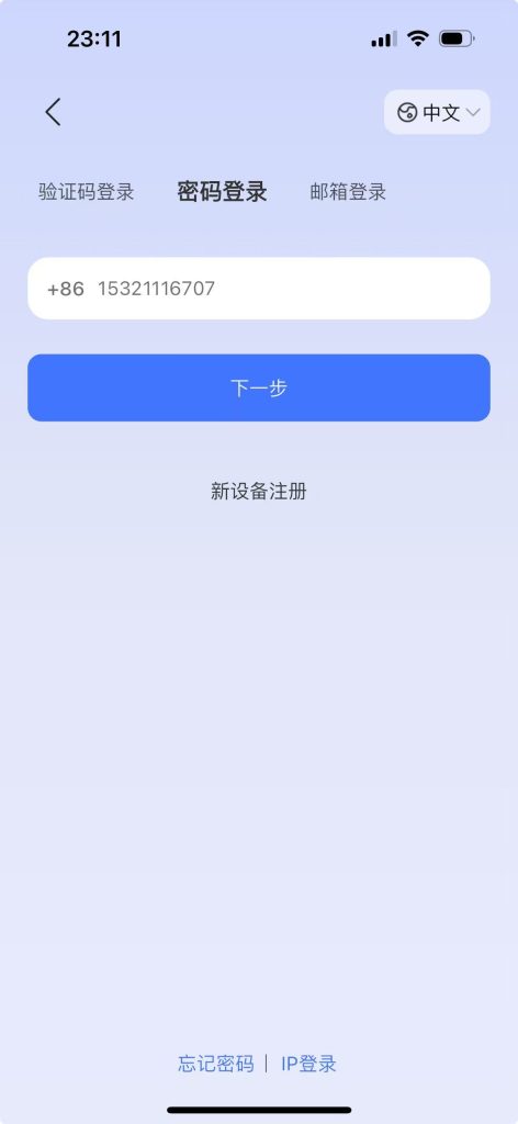 步骤5: 手机号绑定成功,可以“邮箱登录”方式登录设备