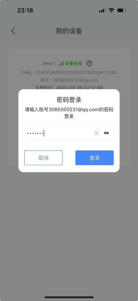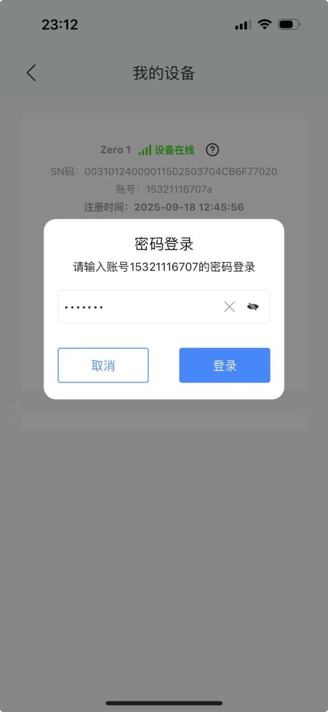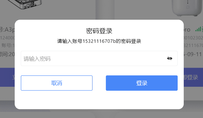步骤4:弹出“密码登录”页面,输入密码点击“登录”,即可登录设备