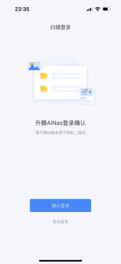 步骤3: 扫一扫TV端登录页面中的二维码,手机端弹出“登录确认”