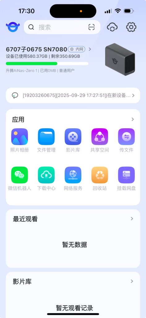 手机端与设备一个局域网登录时,APP登录首页显示“内网”,内网上传/下载文件时网速更加快稳定