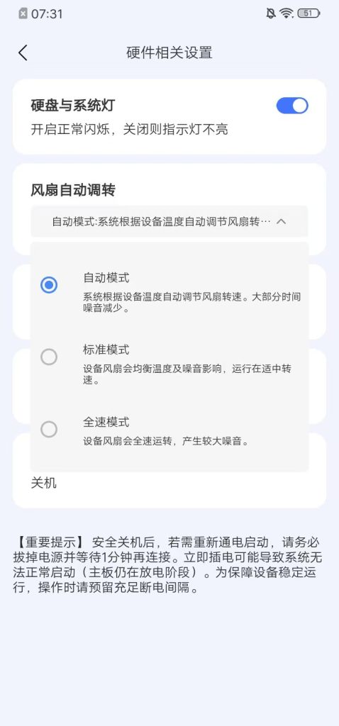 2.3 全速模式:设备风扇会全速运转,产生较大噪音