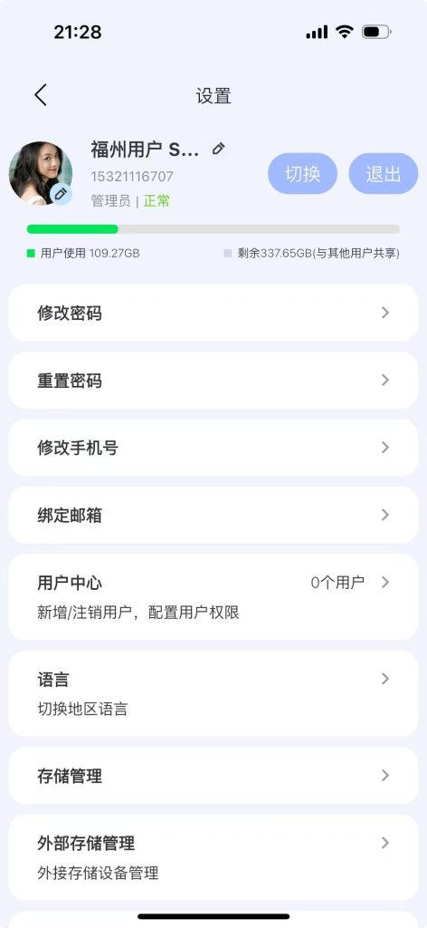 步骤1:登录APP,点击设置-点击存储管理,进入存储管理页面