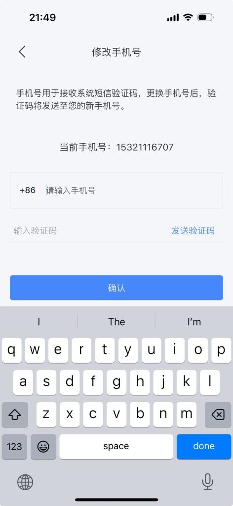 步骤3:输入新的手机,点击发送验证码,输入新手机号验证码