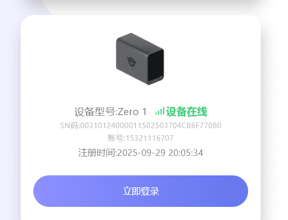 步骤3:输入验证码,“确定”后,进入我的设备页面,选择设备,点击“立即登录”,
