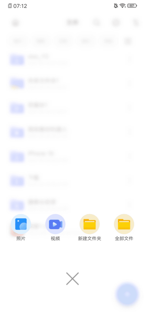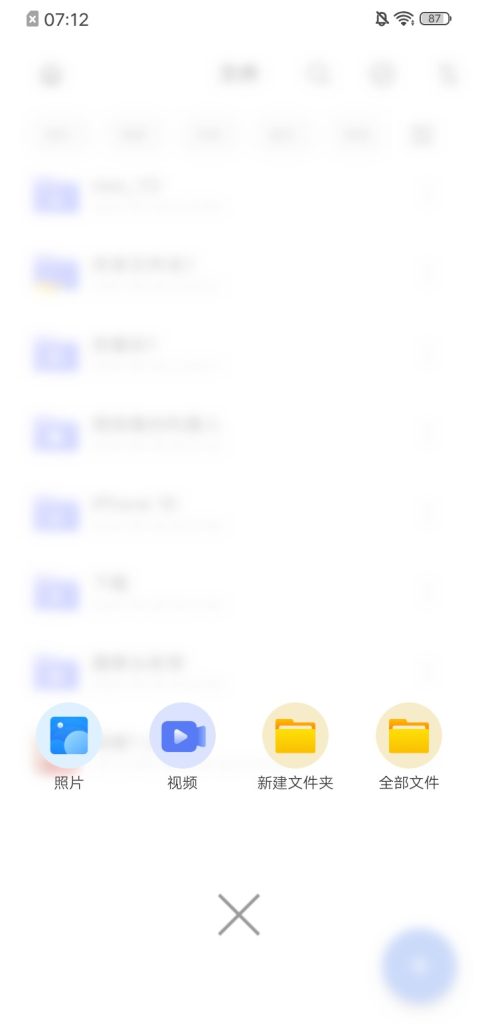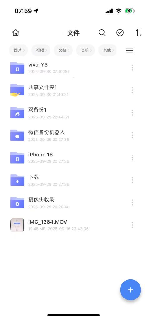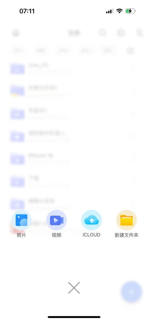 步骤1:文件夹管理-文件-点击右下角的“+”图标,展开后,选择“视频”