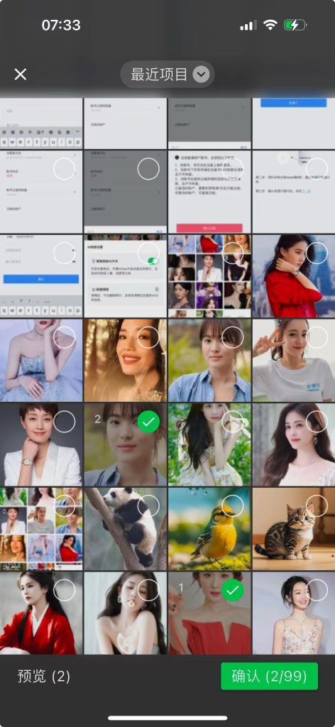 步骤2: 进入手机照片相册中,勾选照片,点击确认