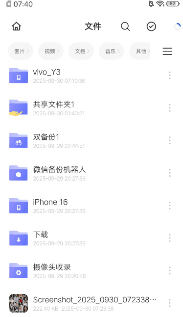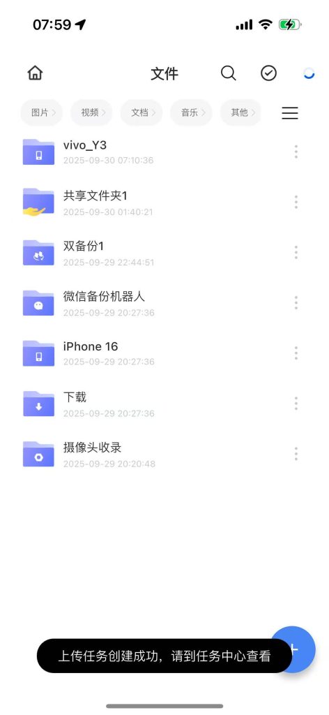 步骤1: 文件夹管理-文件-点击右下角的“+”图标,展开后,点击“视频”