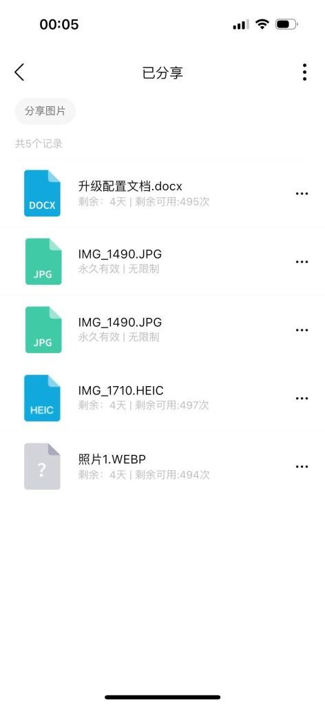 步骤2:点击“我的分享”页面,可见已分享的文件,照片