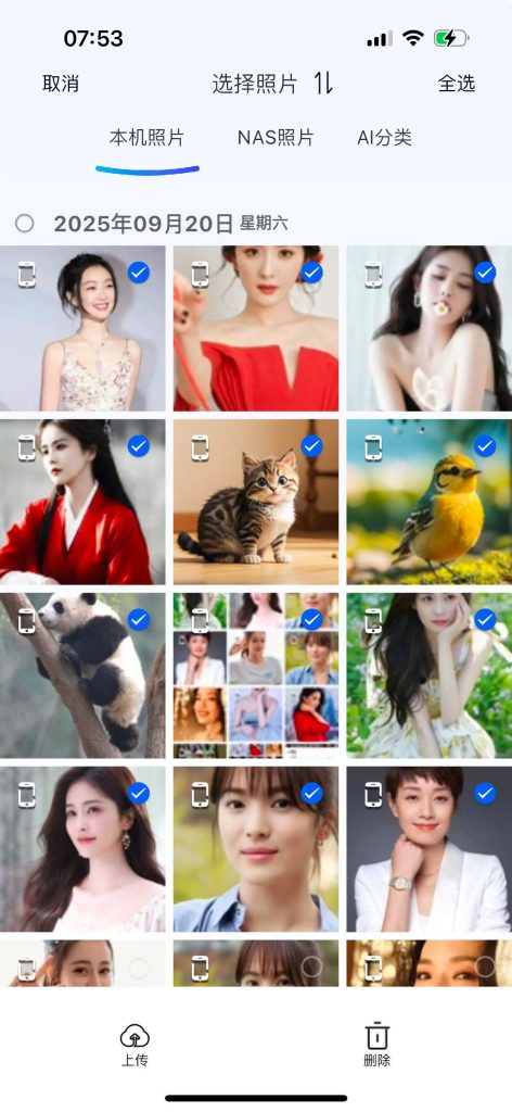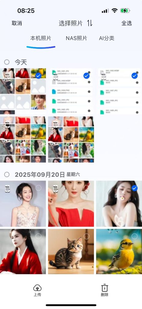 通过NAS照片相册-本机照片页面中可直接删除手机本机相册