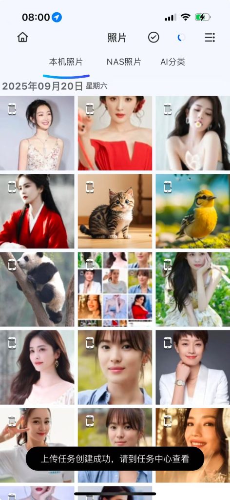 步骤6:进入相册照片-NAS照片页面下,可查看已上传到NAS中的图片