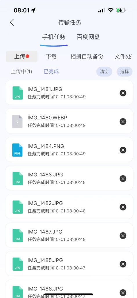 步骤5: 传输任务-上传-已完成页面查看上传完成的图片