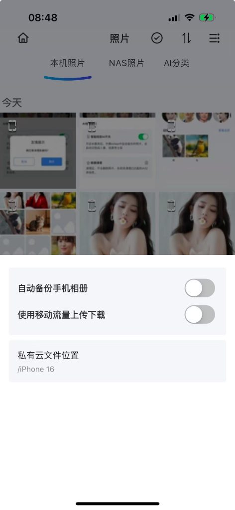 步骤2: 点击“自动备份手机相册”,开启后自动备份手机本地相册中的图片到设备中