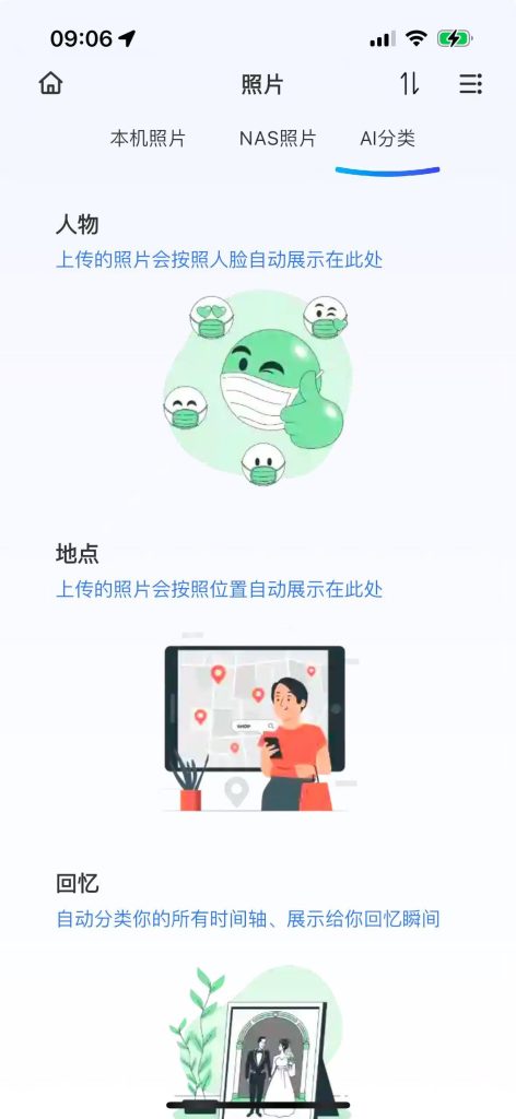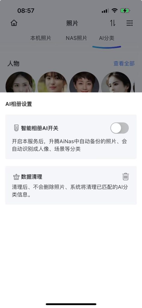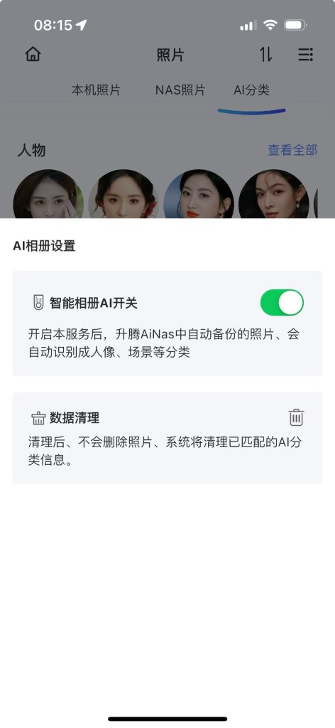 开启本服务后,升腾AiNas中自动备份的照片、会自动识别成人像、场景等分类