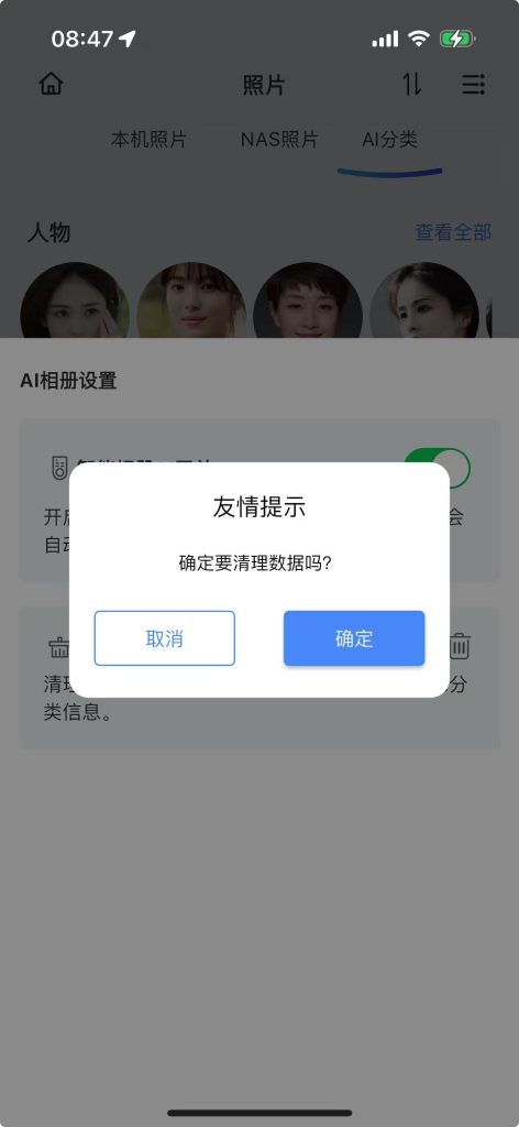 清理后、不会删除照片、系统将清理已匹配的AI分类信息。