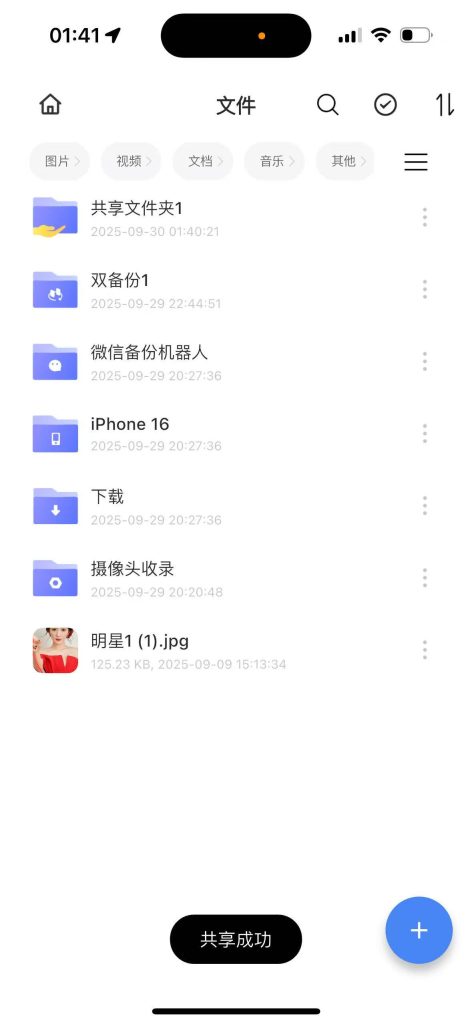 步骤3: 点击共享“”,会提示“共享成功”,共享成功后,该文件夹会有个手的图标