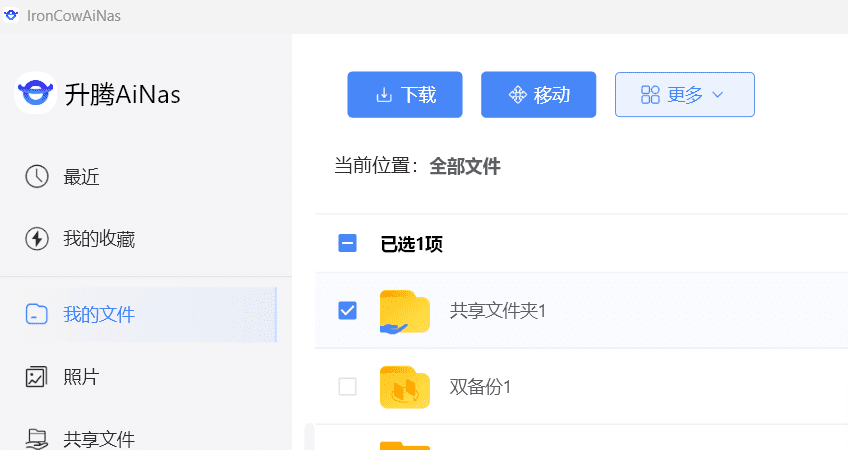 步骤1: 进入文件管理-文件页面下,选择一个文件夹进行共享